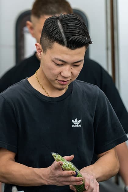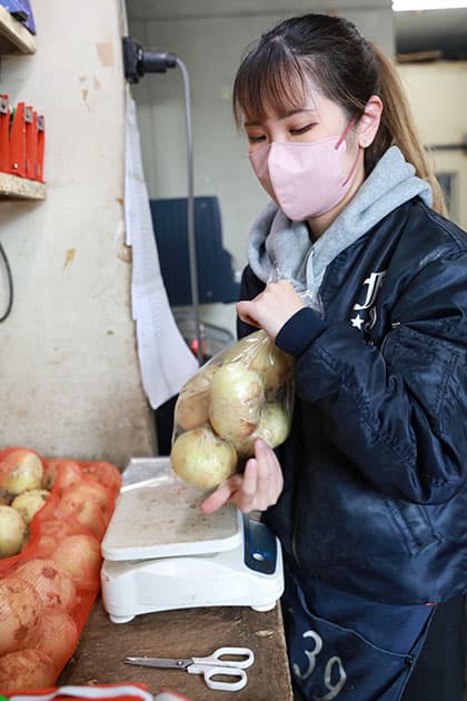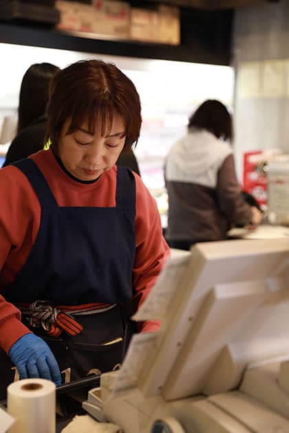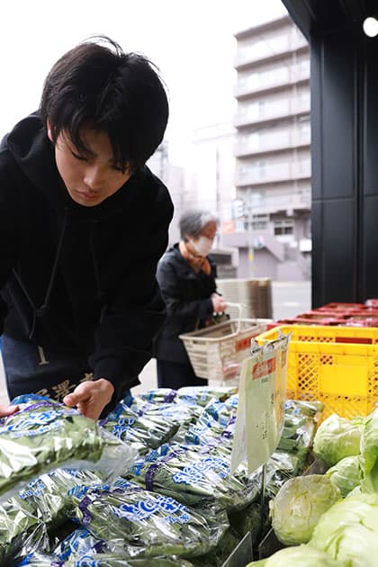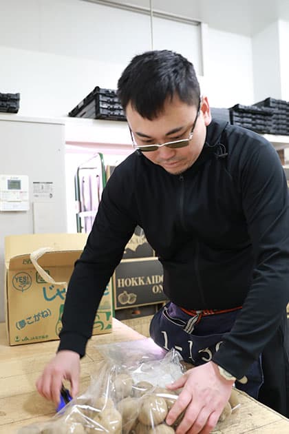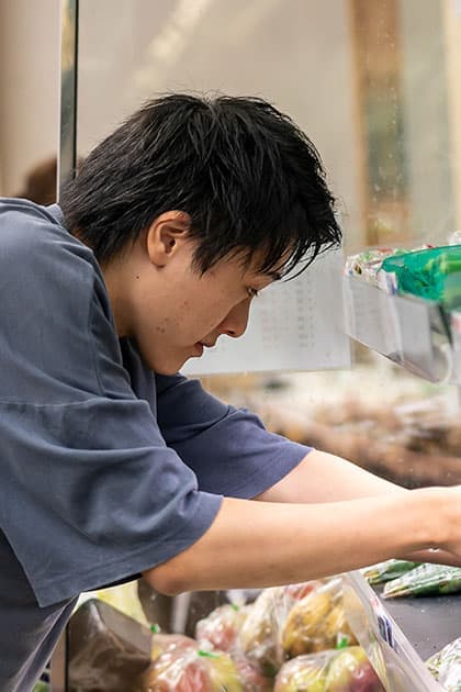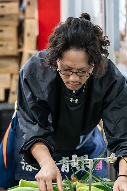 早朝の市場への買い付けから、店舗への搬入、品質管理、売場作りまでを